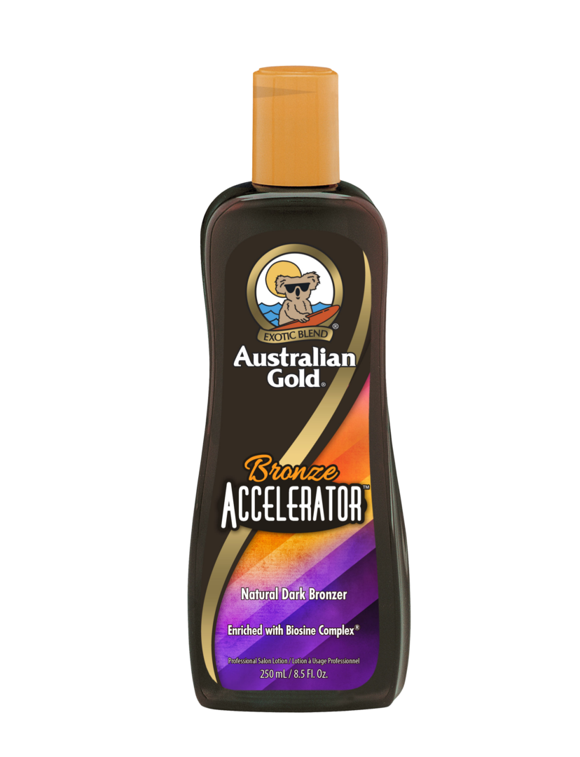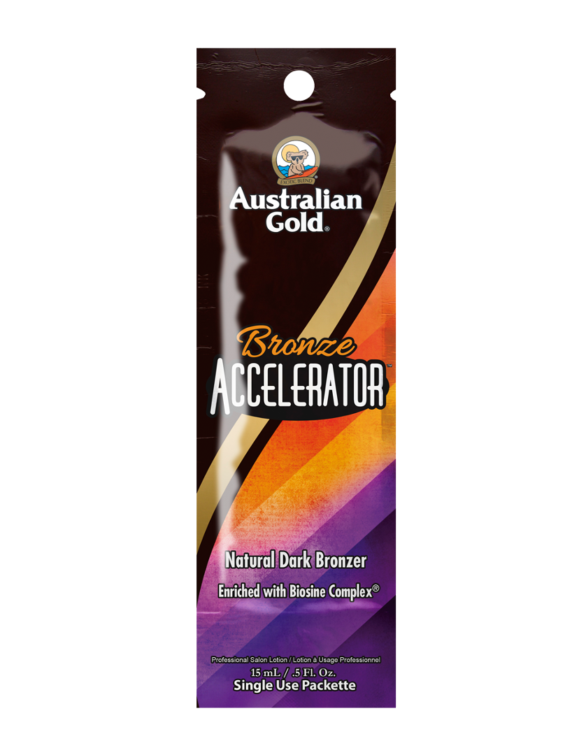 Australian Gold Bronze Accelerator Solarium Creme mit kräftigen, 100% natürlichen und schnell wirkenden Bronzern (Bananenextrakte, schwarze Walnuss und Olivenöl). Unter anderem mit Sheabutter, Vitamin A / E, Safran und Olivenöl.