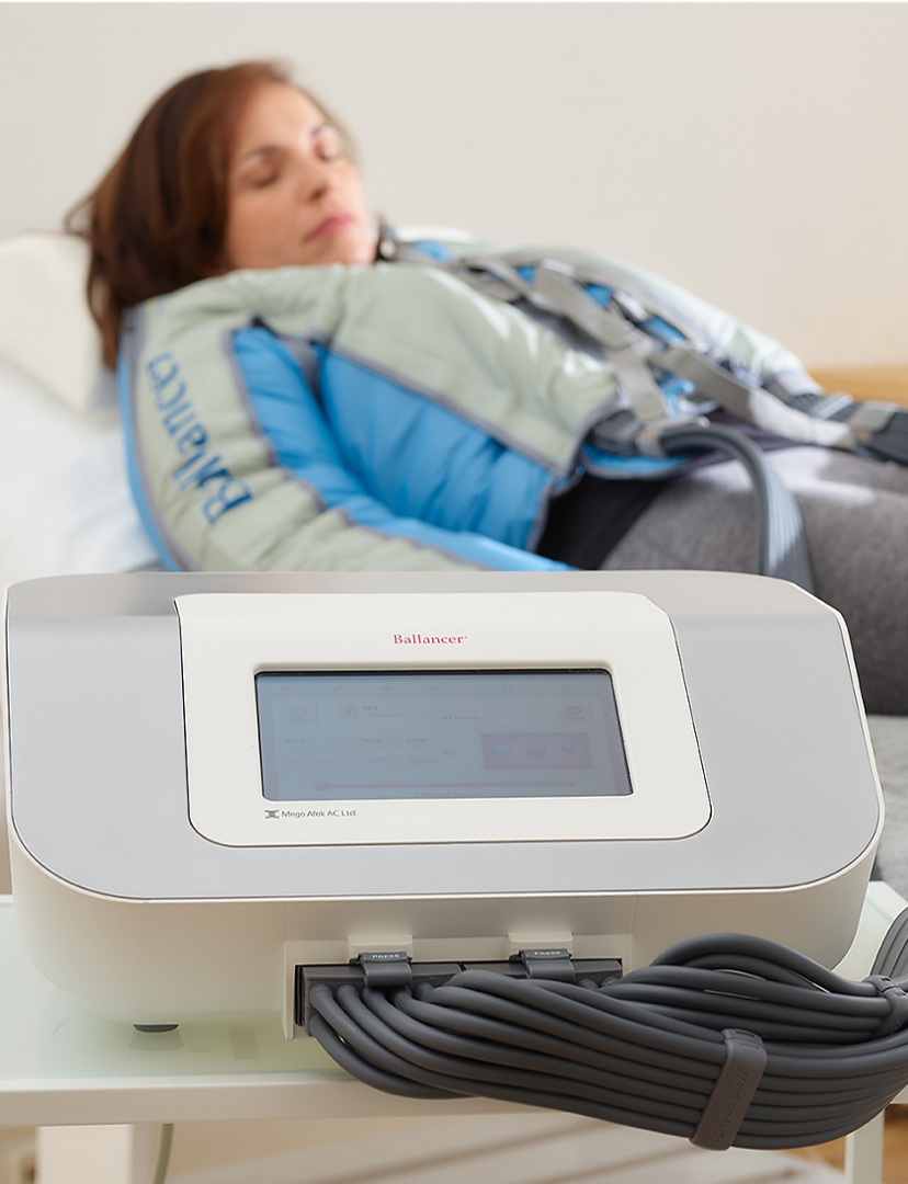 Der neue Ballancer® 606 Touch baut auf dem seit 1997 bewährten Ballancer® Systemen auf und bietet den einleitenden Pretherapia®-Zyklus, eine Massage der nahe der Körpermitte gelegenen Lymphgefäße und -knoten. Diese sanfte, entspannende Massage macht den Weg frei für den Transport von Lymphflüssigkeiten während der nachfolgenden peristaltischen Zyklen, die sich wie folgt aufgliedern: