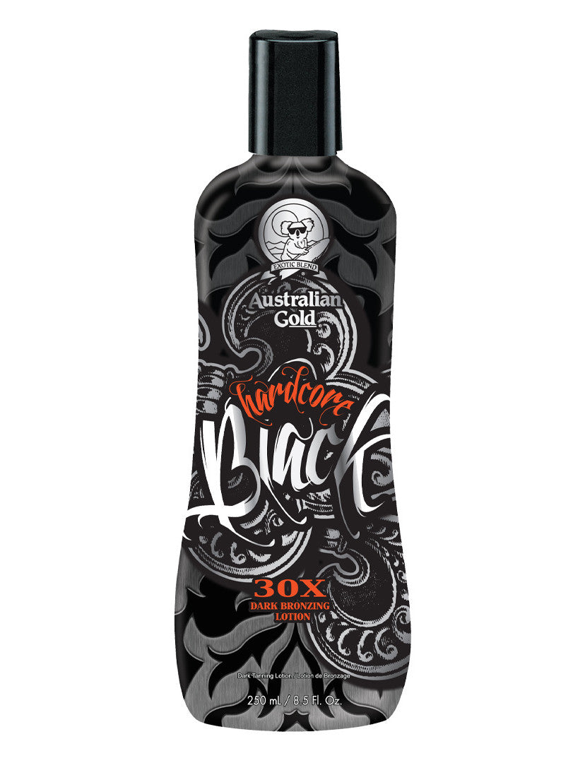 Australian Gold Hardcore Black Solarium Creme mit der 30-fachen Bronzerformel ergibt eine schöne, tiefdunkle Farbe, die in kürzester Zeit entsteht. Omega 3 und 6, Aloe Vera und Vitamine stärken, pflegen und nähren die Haut.